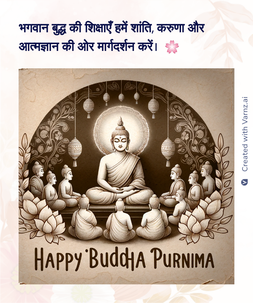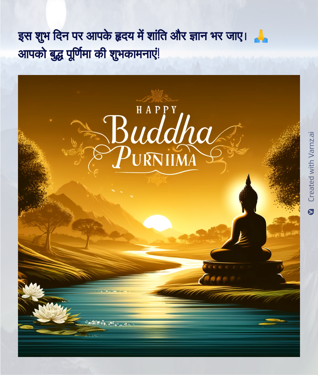 Varnz is an innovative platform that generates stunning and heartfelt cards effortlessly. Our smooth interface allows you to create an amazing greeting card. Not only this, but this platform brings empathizing messages and quotes to enlighten inner spirits. Send AI Buddha Purnima greetings to your loved ones and cherish the wonderful day with spiritual energy.