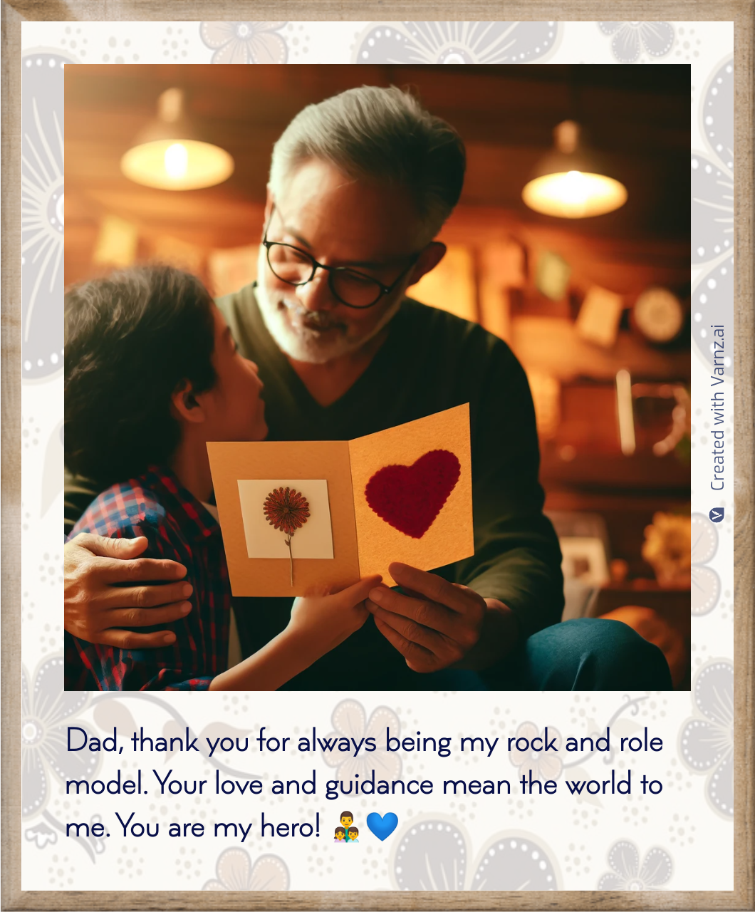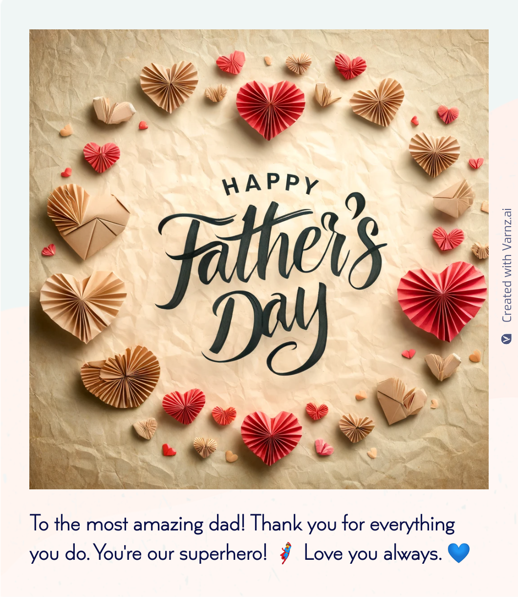 With AI Generated Father’s Day Greeting Card, you can make your Father’s Day celebrations truly memorable. Varnz allows you to create personalized AI greeting cards for Father’s Day, conveying your deepest appreciation and love.