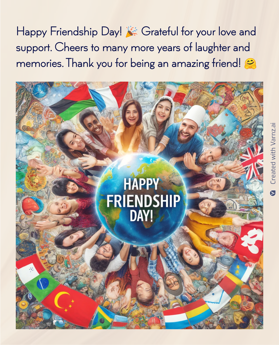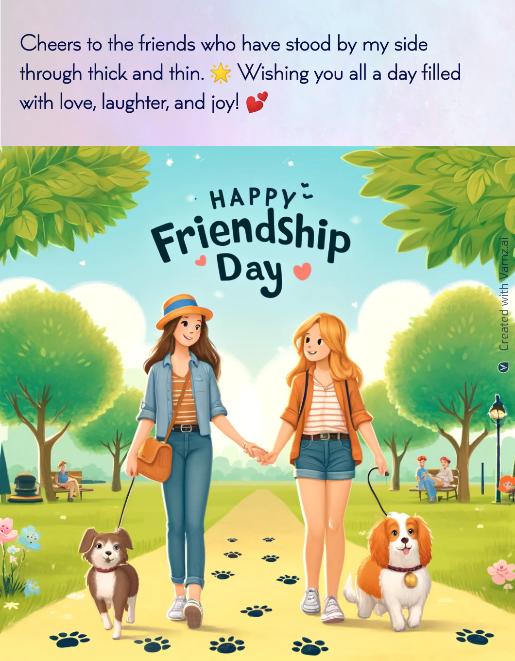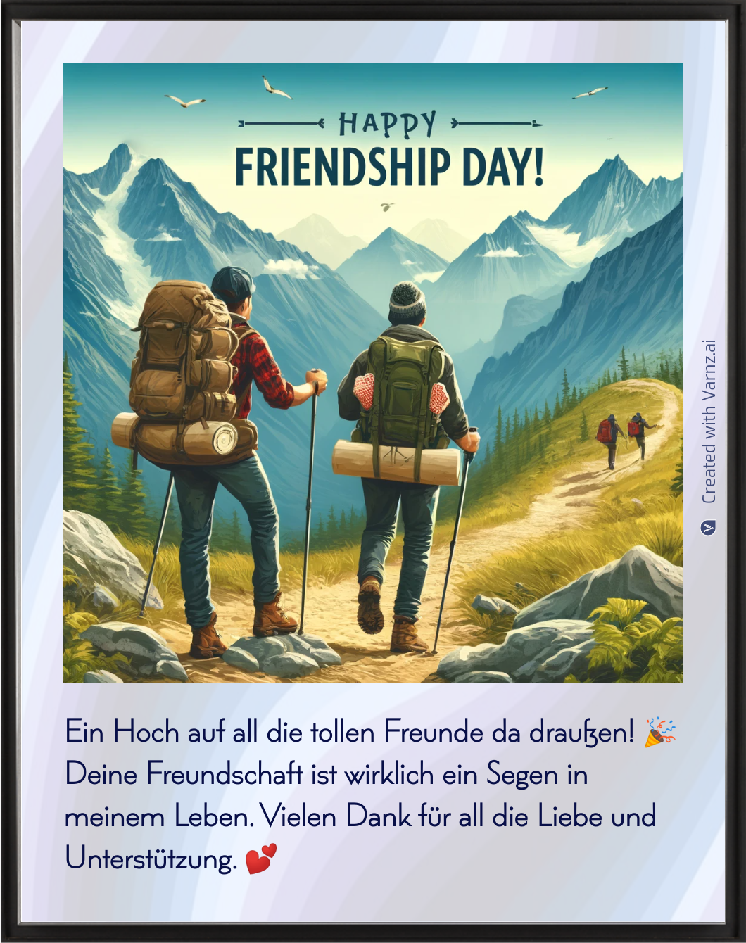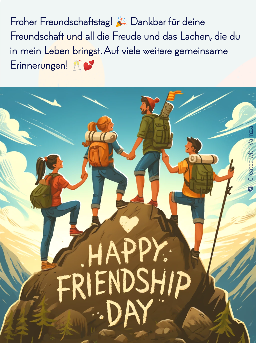 Varnz provides convenient download and sharing options for Friendship Day greetings. Users can download personalized greetings in various formats with a few clicks, which makes them easy to save and print.