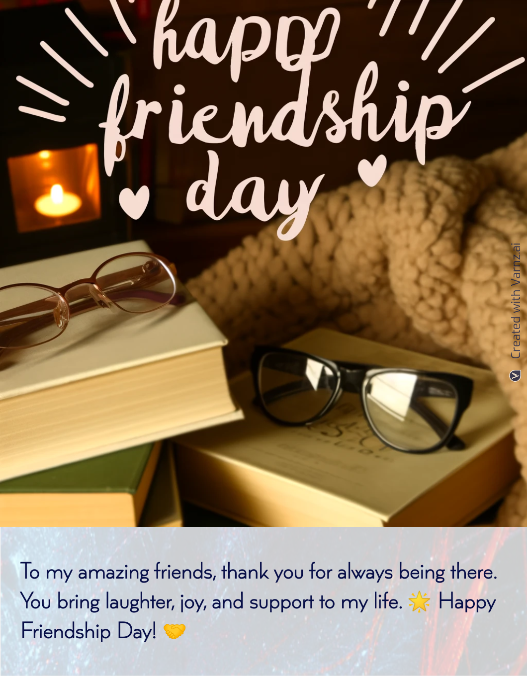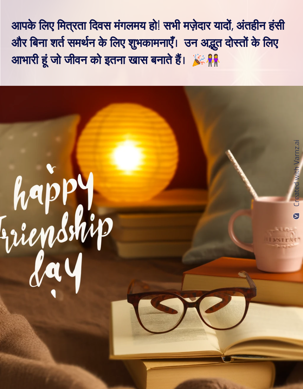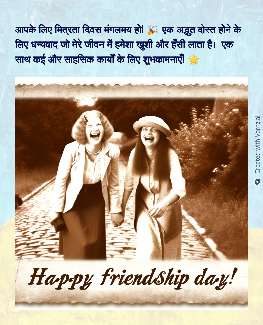 Whether you want to show gratitude, share an amusing memory, or say 'Happy Friendship Day,' Varnz has a few suggestions. Varnz also suggests appropriate photos and styles to enhance your message and make your greeting visually appealing.