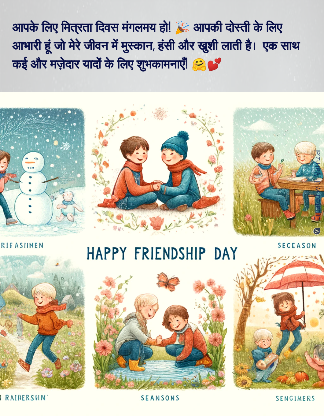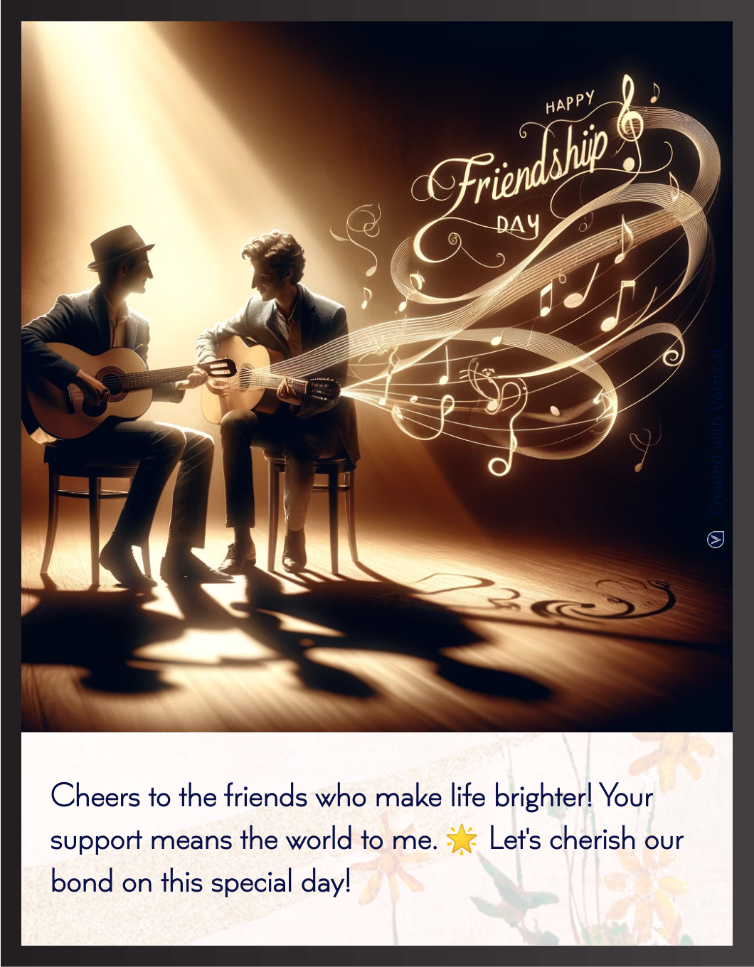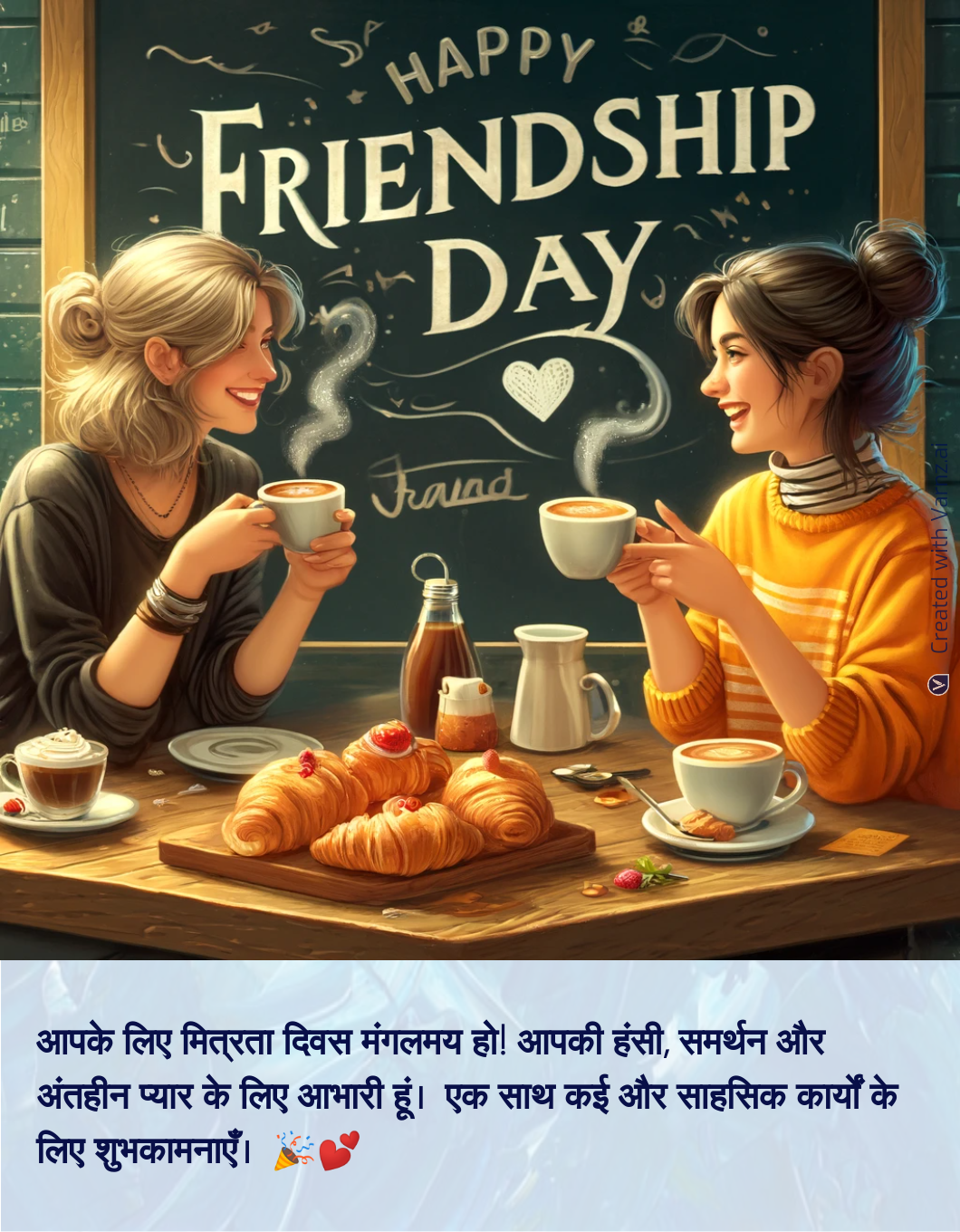 Whether you want to show gratitude, share an amusing memory, or say 'Happy Friendship Day,' Varnz has a few suggestions. Varnz also suggests appropriate photos and styles to enhance your message and make your greeting visually appealing.