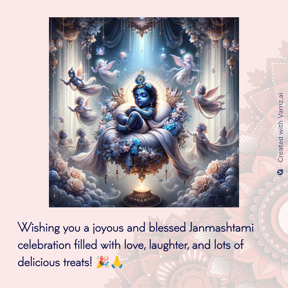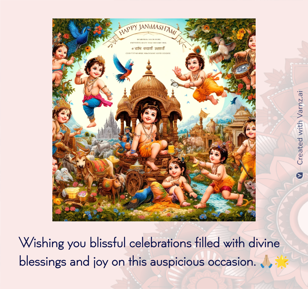 Let's unite in embracing the timeless blessings of Happy Janmashtami Immerse yourself in the spirit of abundance and prosperity, fostering inner growth and celebrating the eternal flow of blessings.