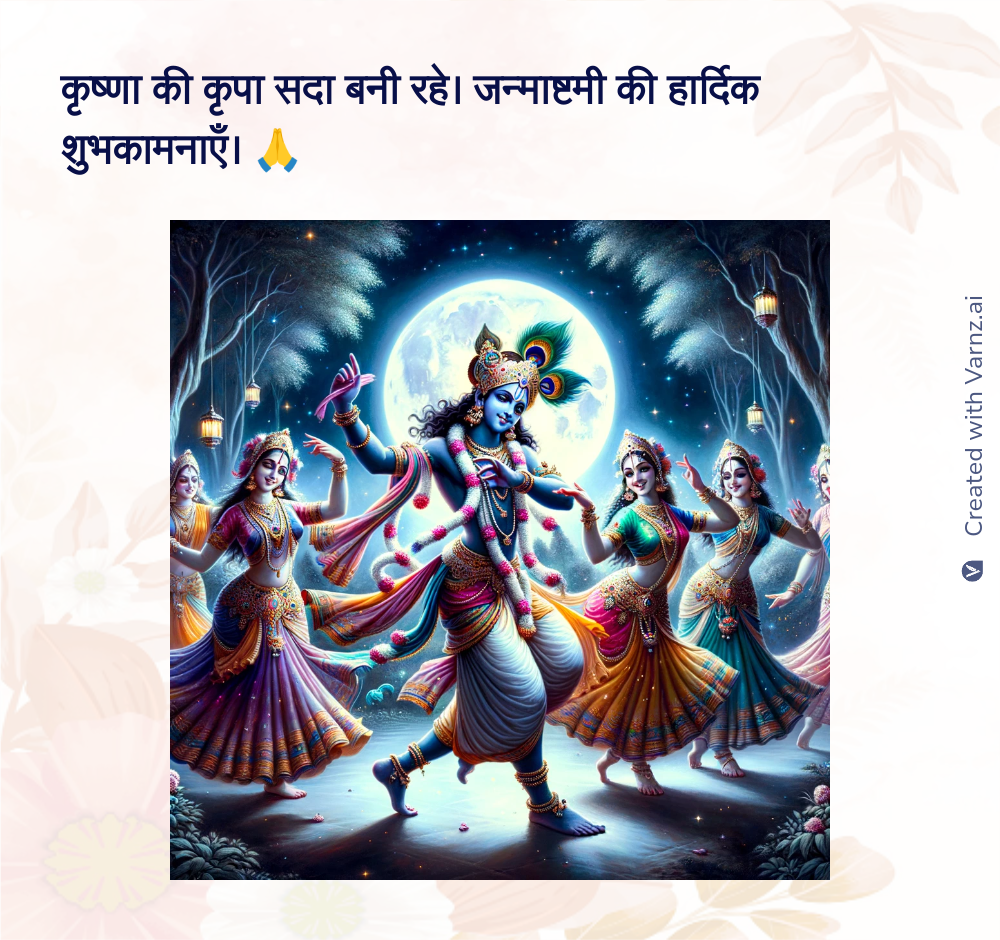 श्री कृष्ण के जन्म के इस पावन अवसर पर, हम सभी उनका स्मरण करते हैं और उनके मार्ग पर चलने की प्रेरणा लेते हैं। जय श्री कृष्ण! 🙏🌟🎉