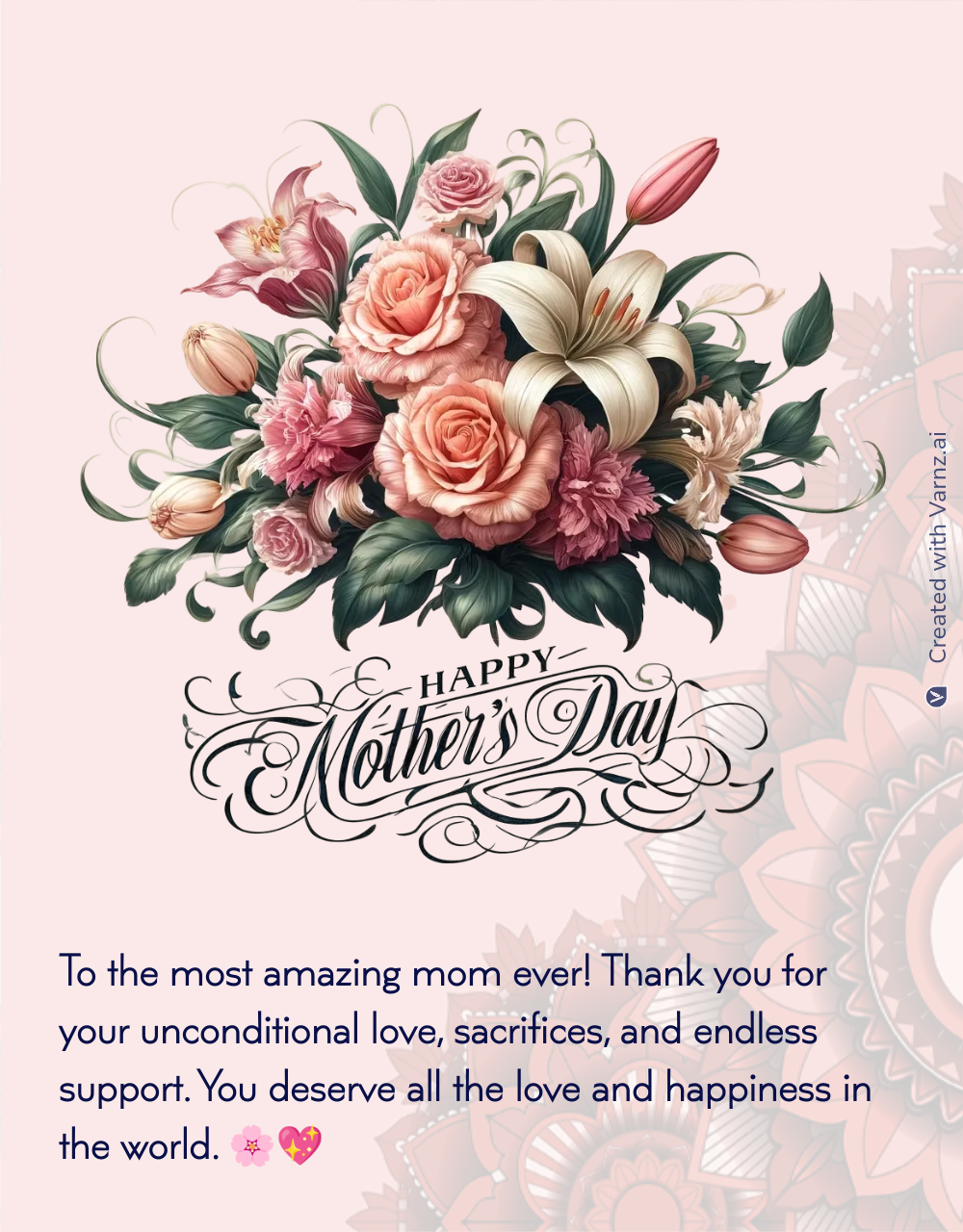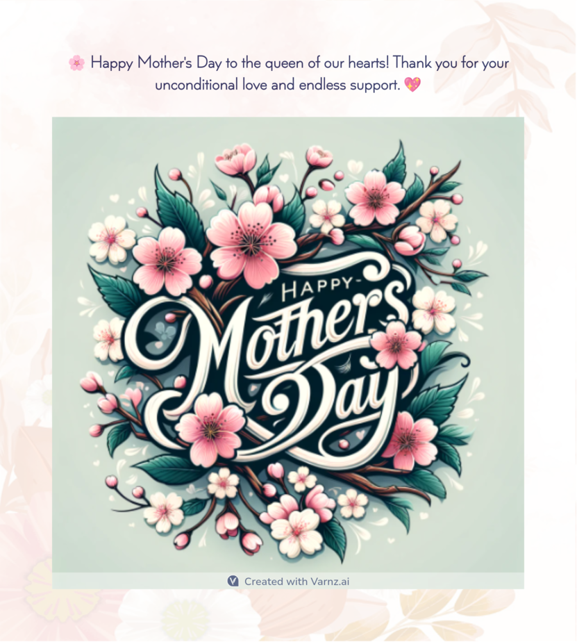 Varnz provides versatility, from choosing fonts and colors to adding photos and special effects. This enables you to design Happy Mothers Day card that are not only beautiful to look at but also highly personal, guaranteeing that your Mother message is heard and appreciated.