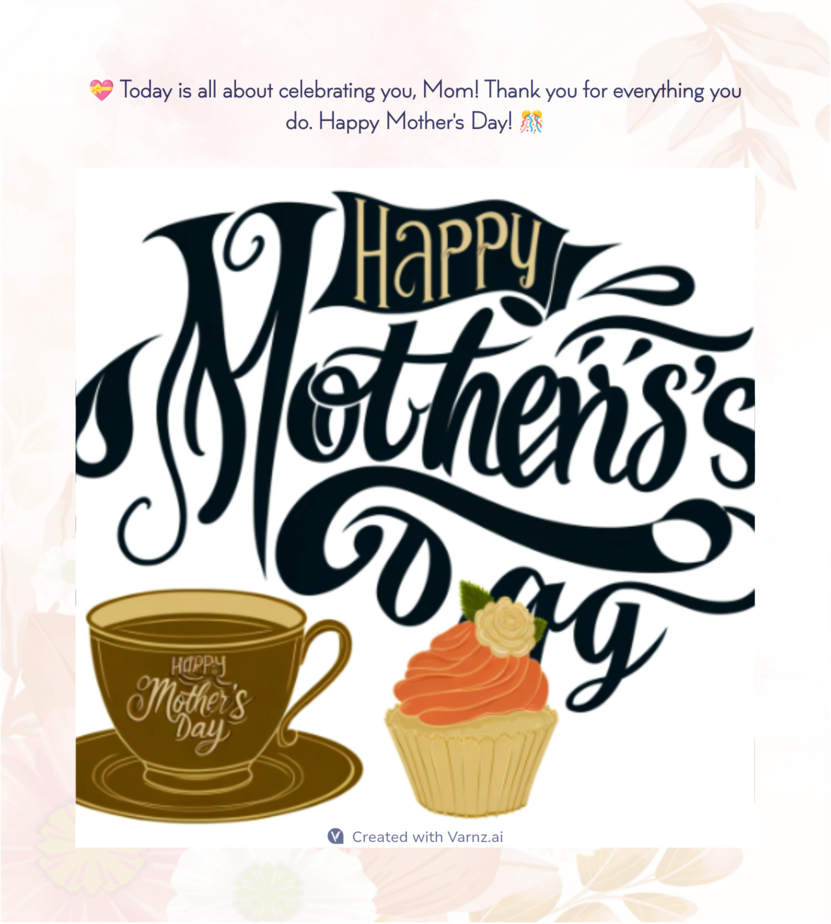 Varnz also offers direct sharing options for platforms like social media and messaging apps, allowing you to share your emotional greetings with your Mother quickly and loved ones and make her day even more memorable.