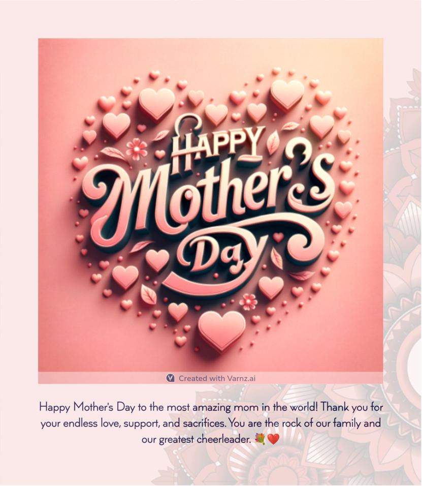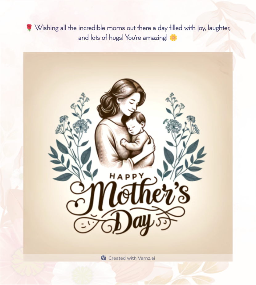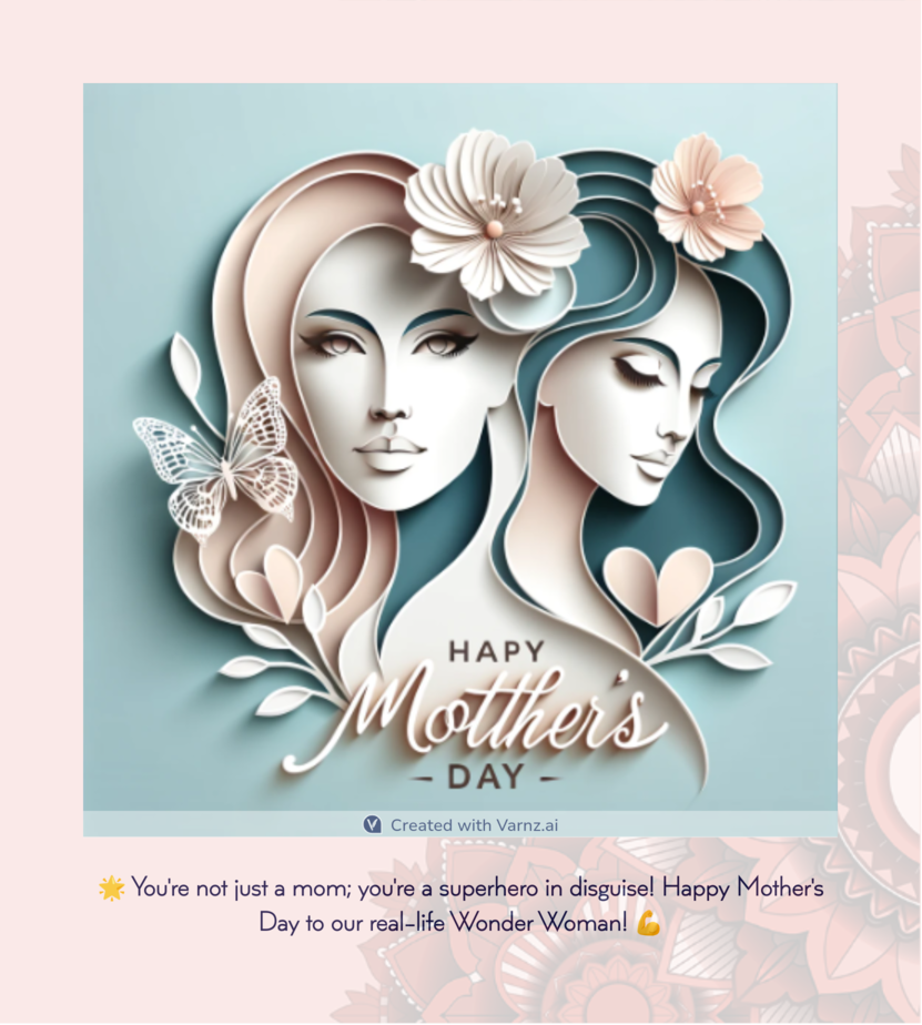 Whether it's choosing the appropriate layouts, fonts, or graphics, Varnz makes sure your welcome is eye-catching and unique. You can create meaningful and unique cards that perfectly express your love and gratitude for your Mother with AI leading the way, which adds even more particular touches to your Mother Day celebration.