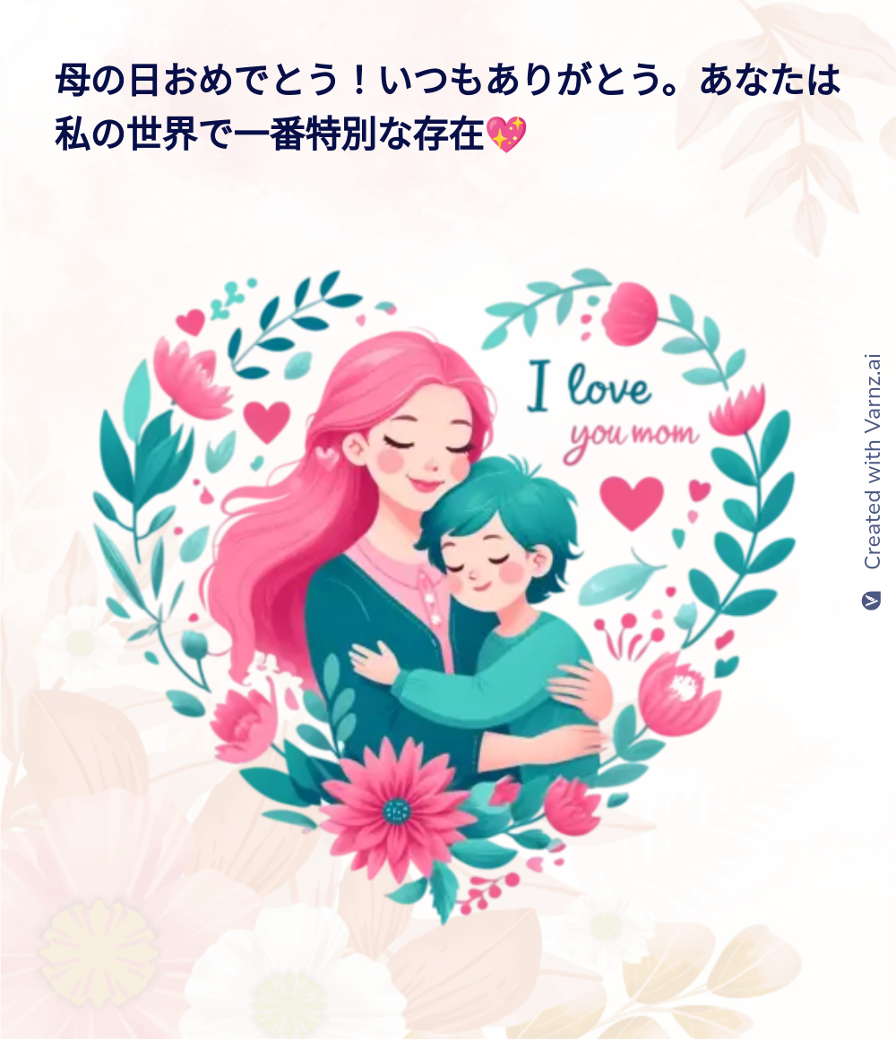 Choose Varnz to make AI Generated Mother Day greeting cards because of its easy download and sharing options. Varnz makes it simple to download your unique card and share it with ease.