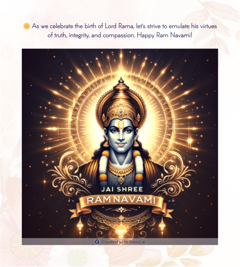 There has never been an easier or cheaper way to celebrate Ram Navami. Varnz's simple tools make the process easy, so you can enjoy the convenience of sharing personalized greetings with joy and ease.