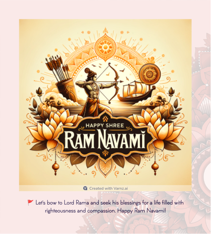 With free and easy-to-use tools like Varnz, making custom Sri Rama Navami greeting cards is easier than ever. You can craft cards without spending money and send them to your loved ones with warm wishes.